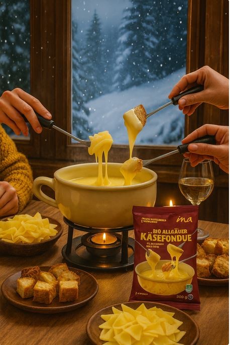 Un trio de fromages bio de l’Allgäu, râpés après trois mois d’affinage et certifiés Bioland. Une composition aromatique exclusive signée ÖMA, prête à ravir tous les amateurs de fondue.