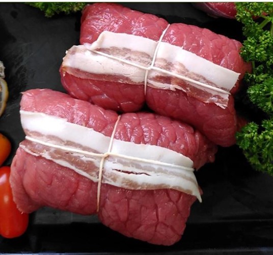 Une farce de porc hachage gros, des champignons de Paris, le tout finement épicé avec une note de coriandre et aromatisé au Madère, roulé dans une escalope de veau Bio prêt à être cuisiné. Les veaux Bioland sont élevés dans le respect du bien être des animaux, grandissent au sein du troupeau mère-vache et se déplacent presque toute l'année en plein air. Ils mangent de l'herbe et du foin très tôt et boivent au pis de leur mère d'où une viande plus foncée et plus ferme que les veaux traditionnels. L'arôme vous convaincra !